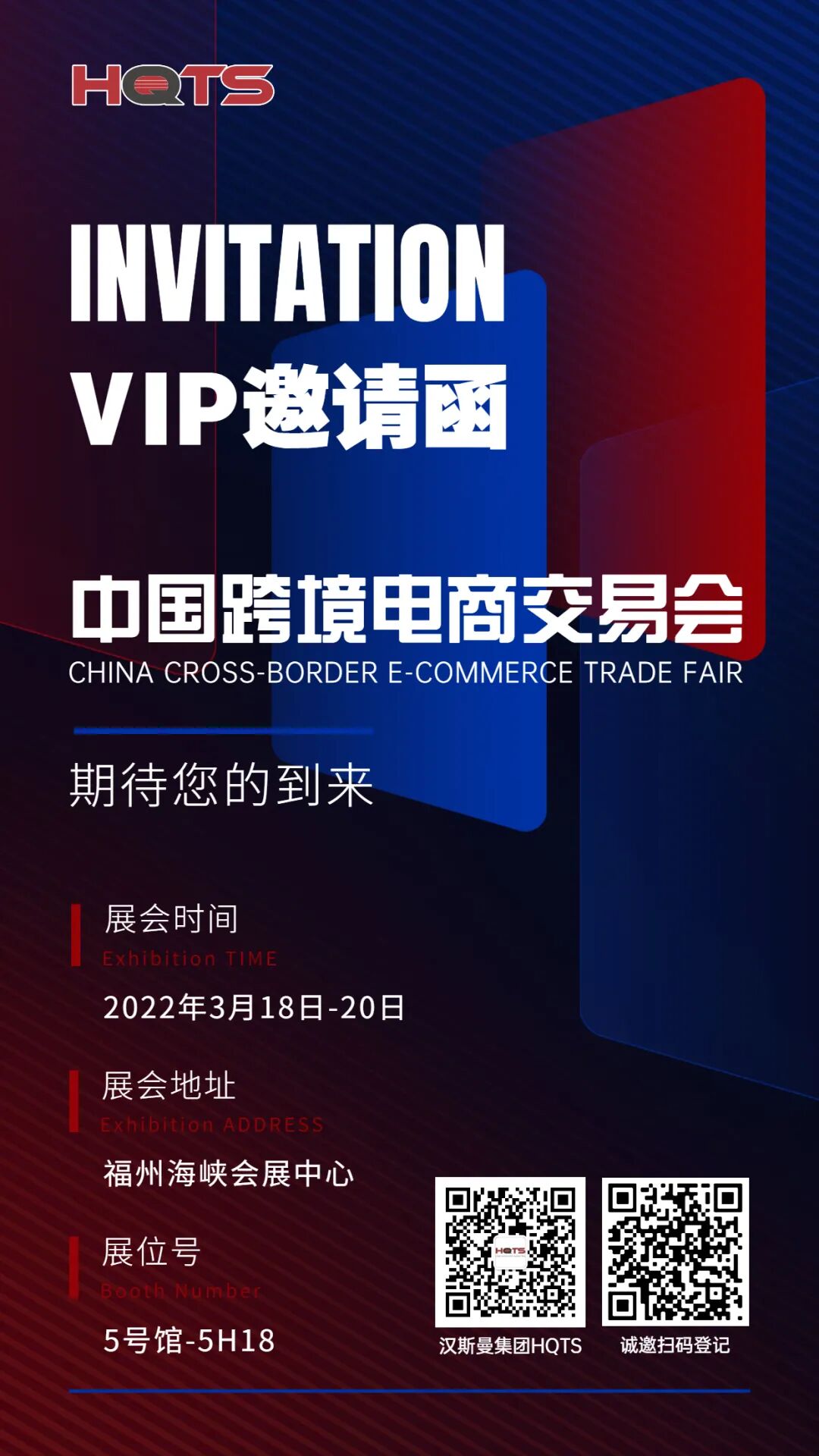 전문적이고 권위 있는 제3자 검사 및 테스트 기관인 HQTS Group(이하 “HQTS”)이 3월 18일부터 20일까지 열리는 중국 크로스보더 전자상거래 박람회에 참가할 예정입니다. 부스 번호는 Hall 5- 5H18, 모두를 위한 서비스 제공 주요 전자상거래 플랫폼과 브랜드에서 현장 무료 상담을 진행합니다. 아래 사진은 초청장입니다. QR 코드를 스캔하여 등록 및 방문 하실 수 있습니다 .