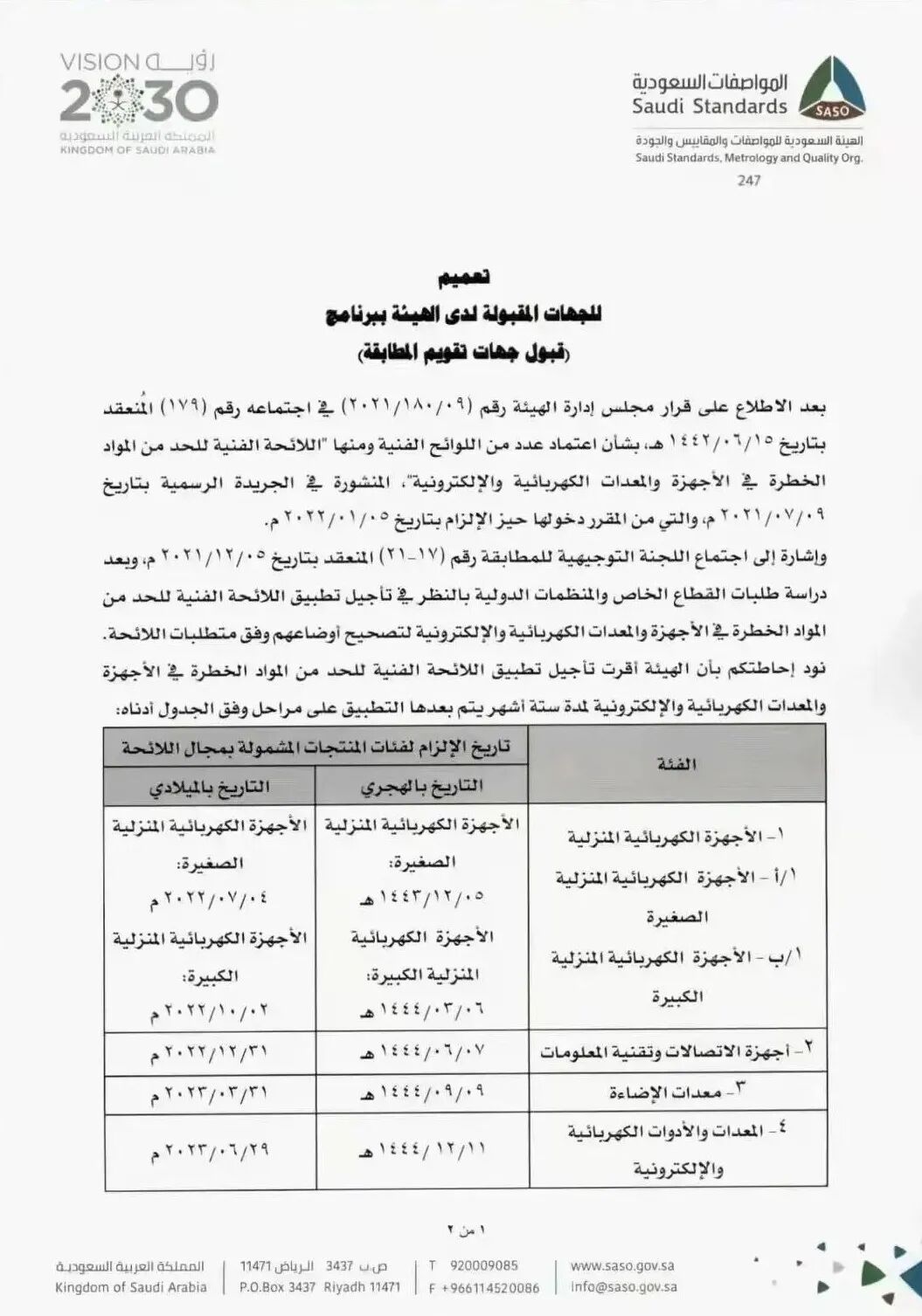 사우디 RoHS 연장! 6대 카테고리에 대해서는 전자, 전기제품 및 기타 관련업체를 주목해주시기 바랍니다.